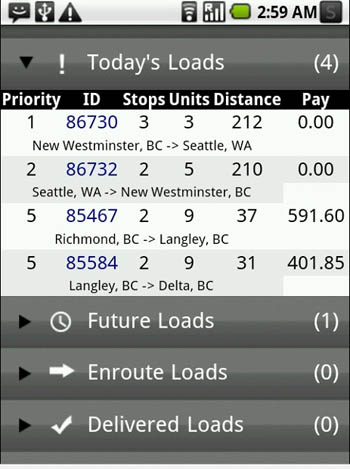 - Receive load routing and GPS mapping